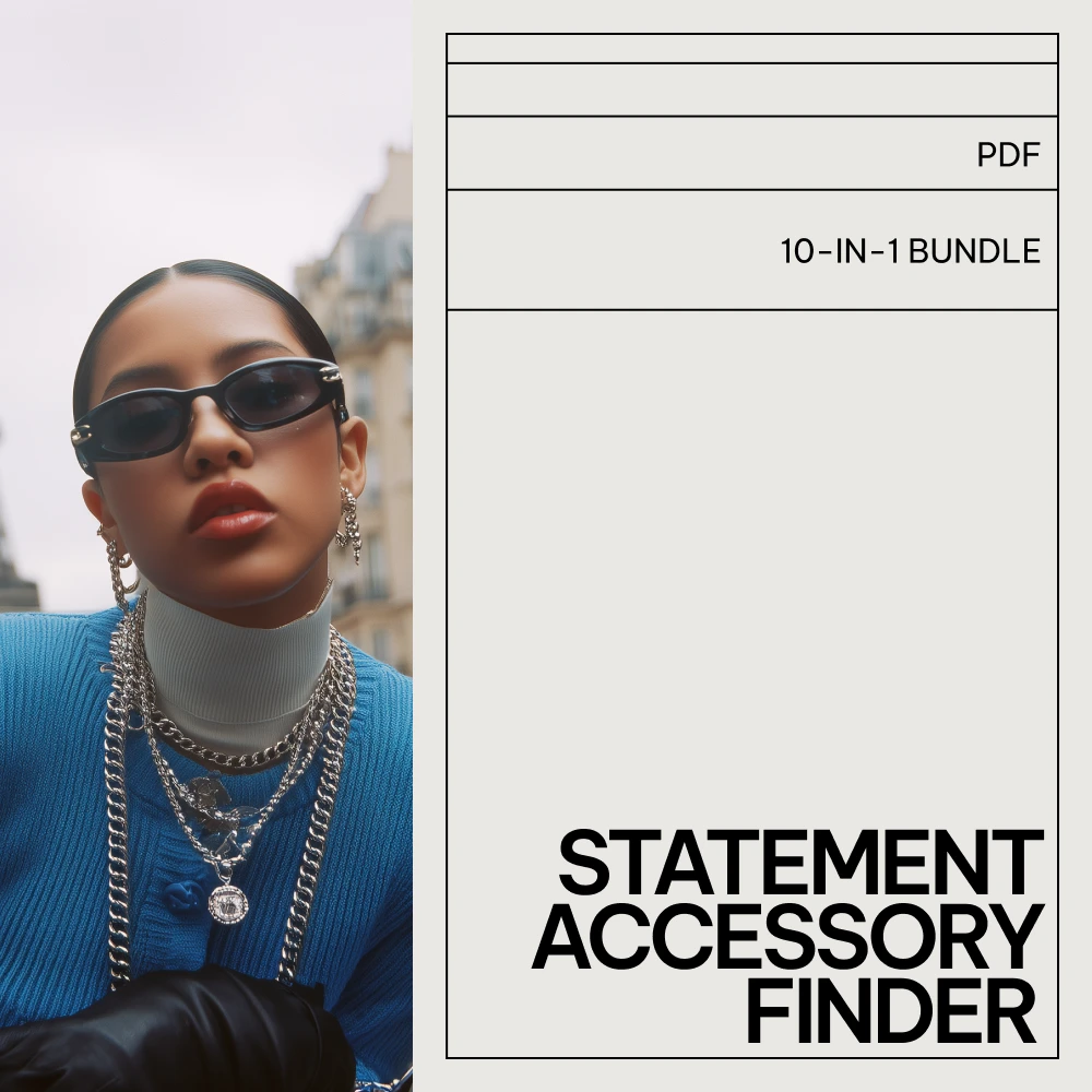 Unlock the full potential of your wardrobe with the Statement Accessory Finder Bundle, a 10-in-1 collection of digital guides, eBooks, and checklists designed to elevate your style game. Whether you’re a fashion beginner or a seasoned style expert, this comprehensive bundle offers everything you need to master the art of accessorizing. From choosing the perfect statement jewelry to finding the right bags and belts, these resources will empower you to effortlessly style any outfit and showcase your unique fashion sense. Ready to take your style to the next level?