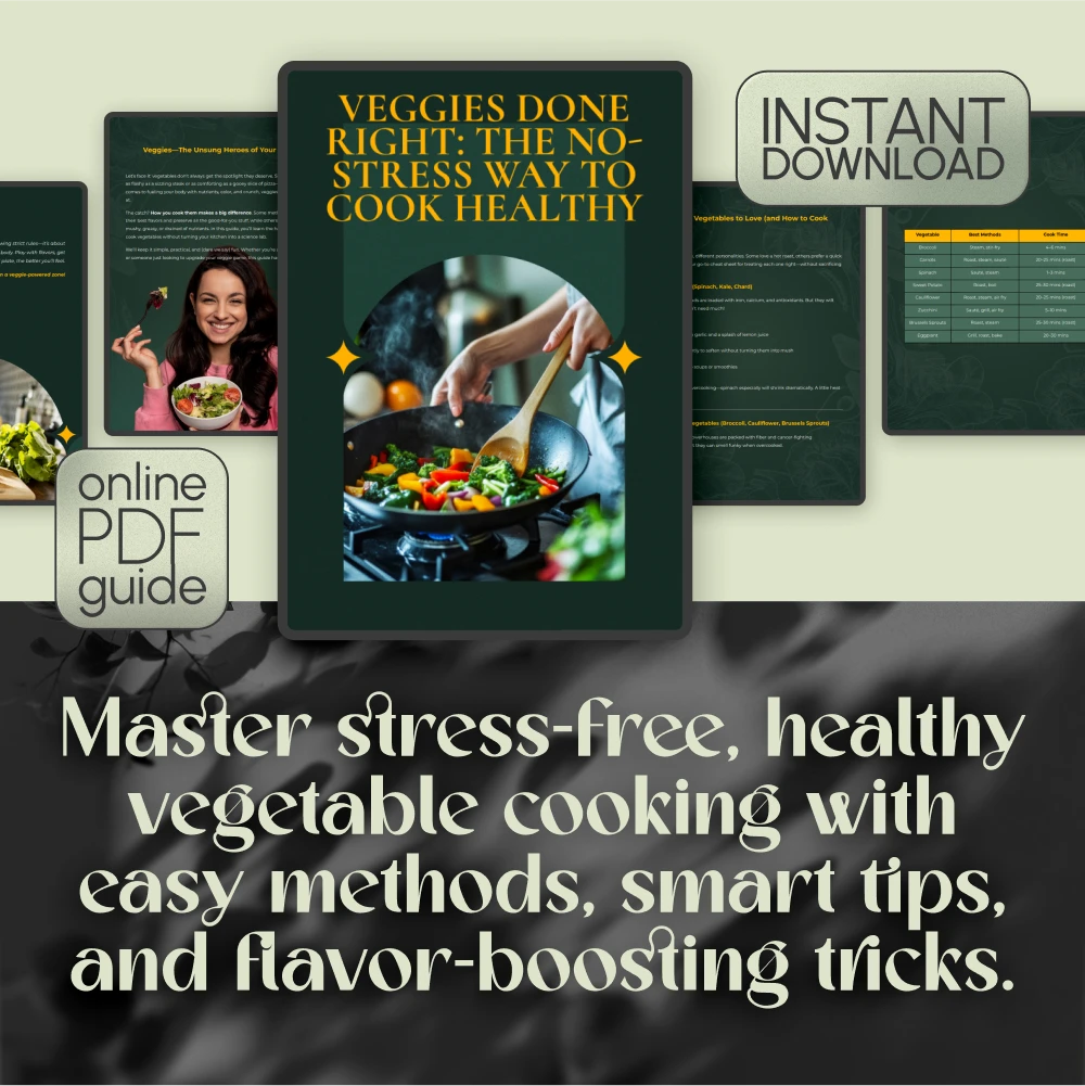 If cooking vegetables feels like a chore or always turns into a bland, mushy disappointment, this guide is your game-changer. Veggies Done Right: The No-Stress Way to Cook Healthy is the ultimate digital guide to transforming everyday vegetables into vibrant, flavorful, and health-packed dishes—without spending hours in the kitchen or sacrificing taste. Whether you’re just starting your healthy eating journey or you’re a busy home cook looking to level up your plate, this downloadable guide will help you make smart, simple, and satisfying choices.